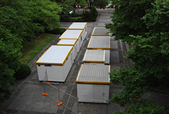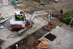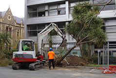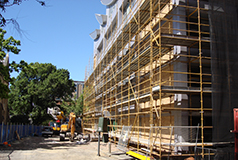 The Pre-construction phase encompasses decant and dismantling of the previous Architecture and Old Commerce buildings, including enabling works (services redirection, tree removal, propping of Joseph Reed façade), demolition and site establishment. It ended with the handover of the site to the main contractor, Brookfield Multiplex.